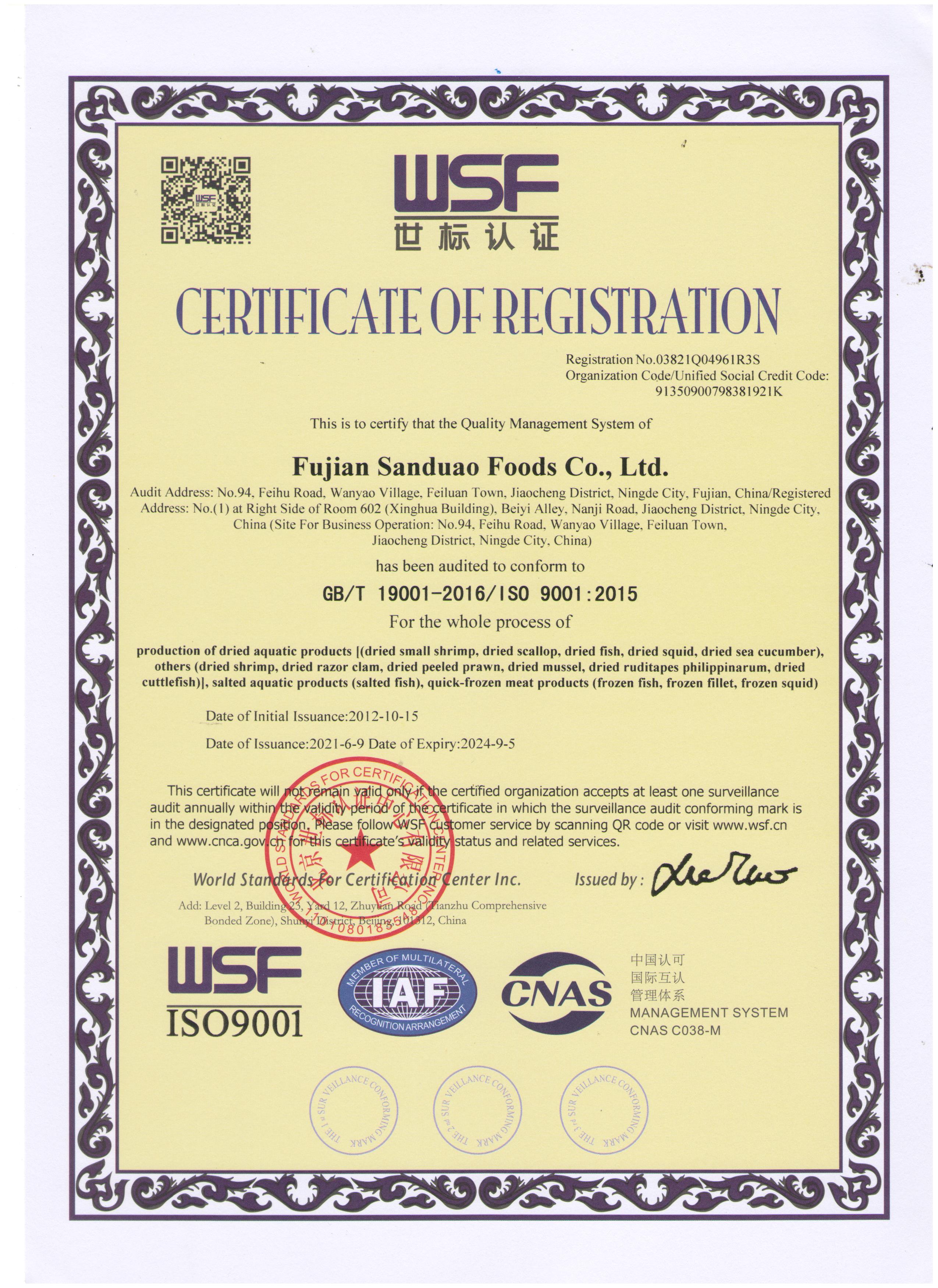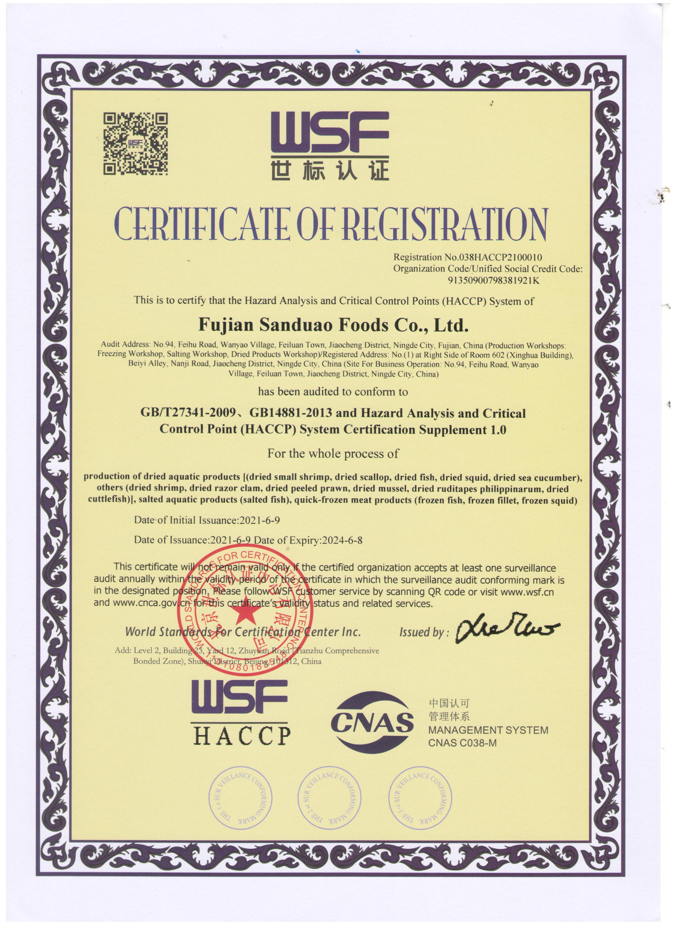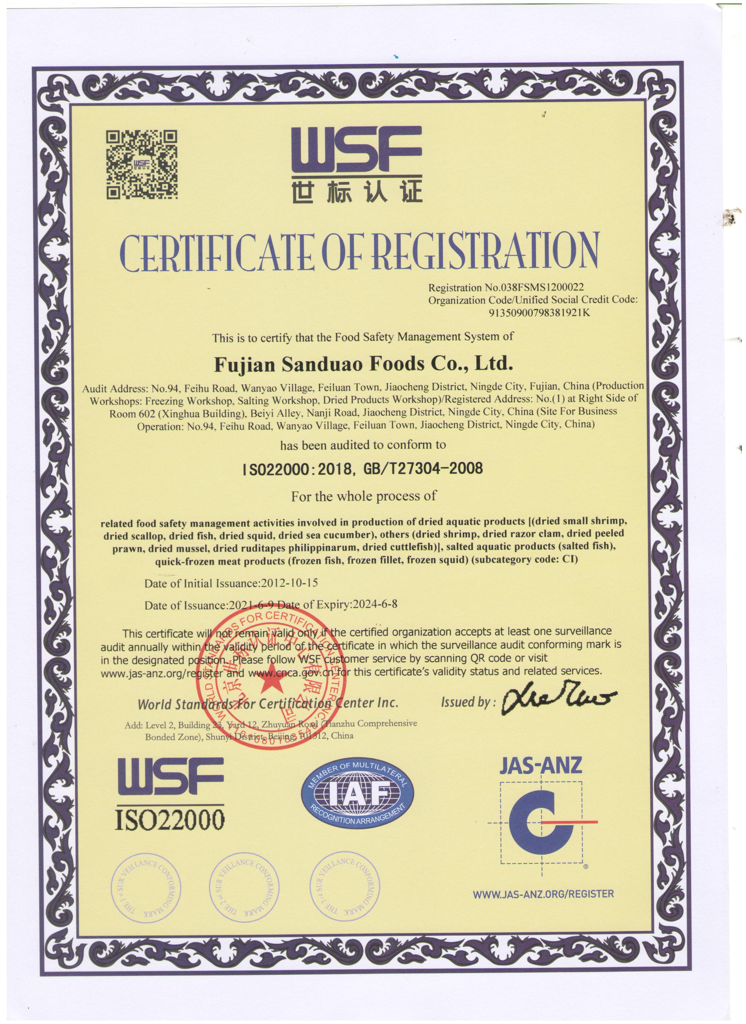 以匠心鉆研品質(zhì),采用先進(jìn)質(zhì)量和食品安全管理模式,獲歐盟、美國(guó)FDA、英國(guó)、日韓等全球多國(guó)和地區(qū)注冊(cè),通過(guò)ORGANIC、HACCP、ISO22000、ISO9001、ISO14001、ISO45001等多項(xiàng)國(guó)際認(rèn)證;同時(shí)獲農(nóng)業(yè)產(chǎn)業(yè)化國(guó)家重點(diǎn)龍頭企業(yè)、福建省十佳海洋龍頭企業(yè)、省水產(chǎn)龍頭企業(yè)、省名牌產(chǎn)品、省著名商標(biāo)等多項(xiàng)榮譽(yù)。